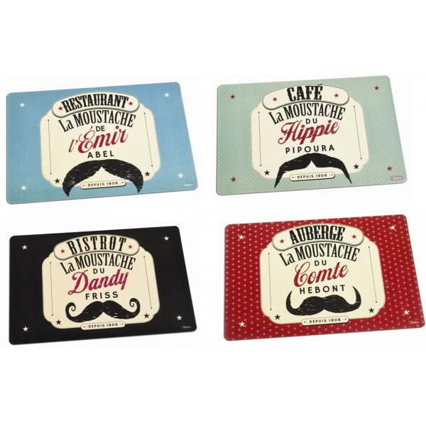 Set de Table Moustaches 4 sets Natives déco rétro et vintage