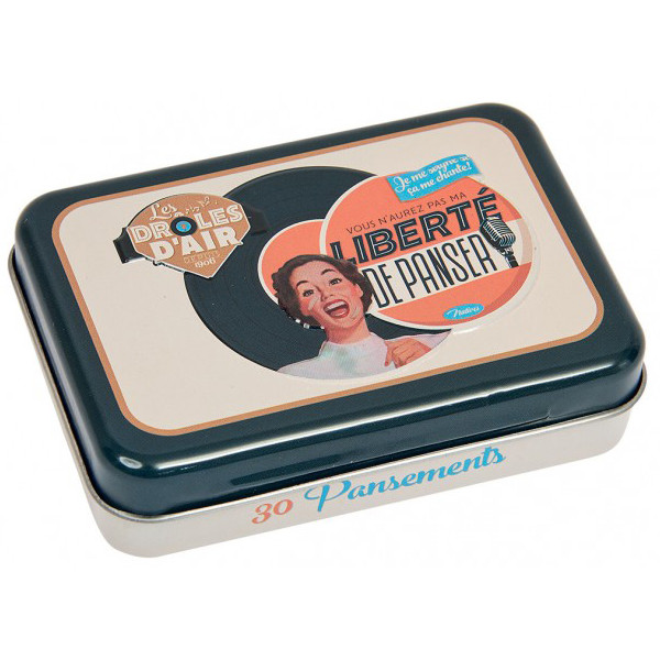 Boîte de pansements LES DRÔLES D'AIRS Natives déco rétro vintage. Une très jolie boîte en métal avec 30 pansements pour enfant déco rétro vintage. VOUS N'AUREZ PAS MA LIBERTÉ DE PANSER ♪♫♫. Je me soigne si ça me chante !