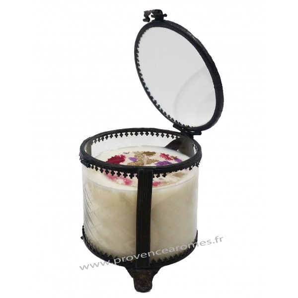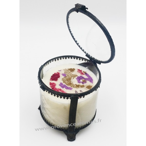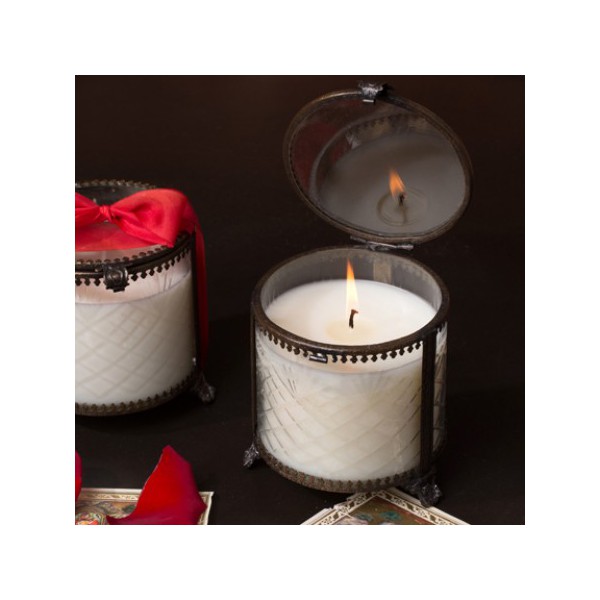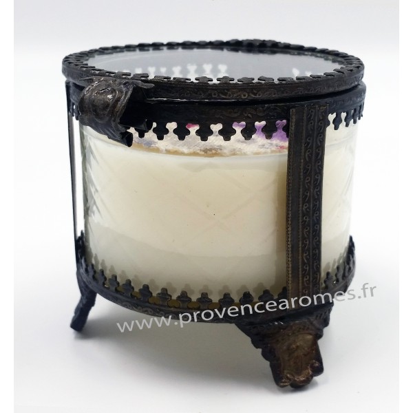 Bougie parfumée GROSEILLE à la cire de Soja naturelle dans un Gros pot style Victorien en Verre et laiton rétro vintage. Une ambiance très parfumée avec cette bougie à la cire végétale de soja nature