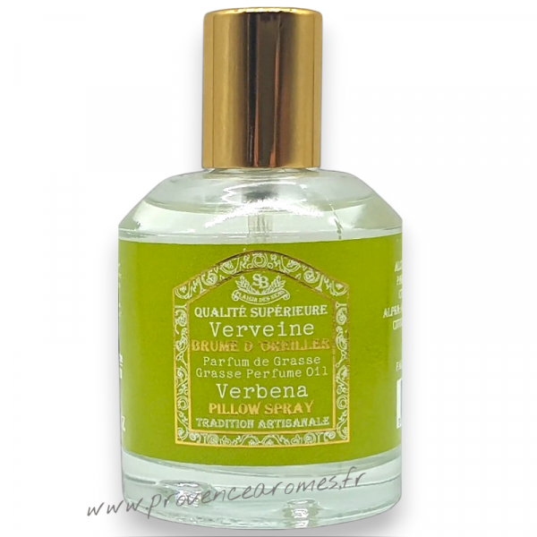 Brume d'oreiller VERVEINE Un été en Provence. Vaporisateur le flacon de 50 ml parfum verveine à pulvériser sur l'oreiller, Un été en Provence. Une fragrance aux notes délicate réconfortante de verveine.