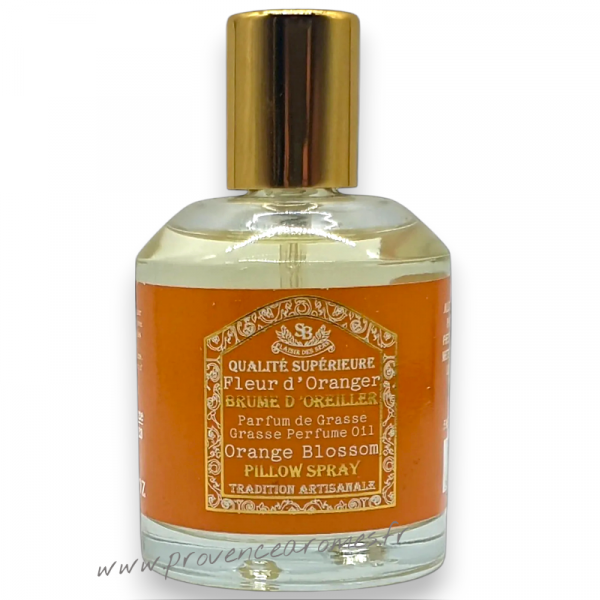 Brume d'oreiller FLEUR D'ORANGER Un été en Provence. Vaporisateur le flacon de 50 ml parfum fleur d'oranger à pulvériser sur l'oreiller, Un été en Provence. Une fragrance aux notes délicate réconfortante.