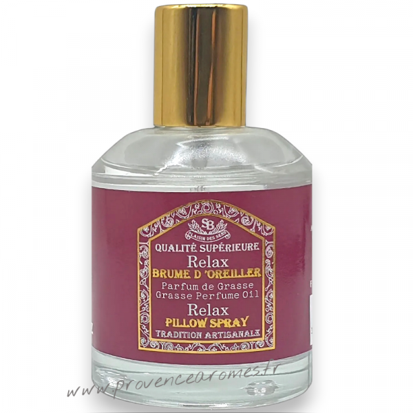 Brume d'oreiller Relax Un été en Provence. Vaporisateur le flacon de 50 ml parfum Relax à pulvériser sur l'oreiller, Un été en Provence. Une fragance aux notes délicate qui nous apporte ses effluves au charme délicieusement apaisante et relaxante, une senteur de plainitude et de bien-être qui invite au rêve et à la détente.