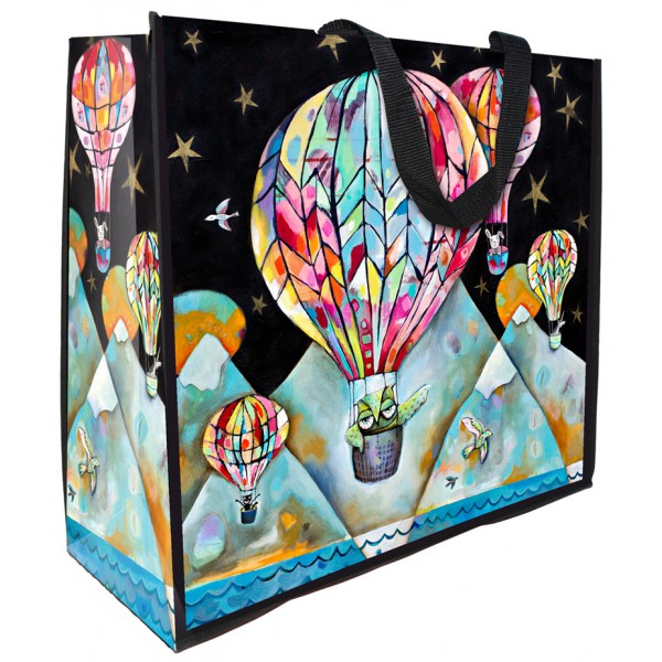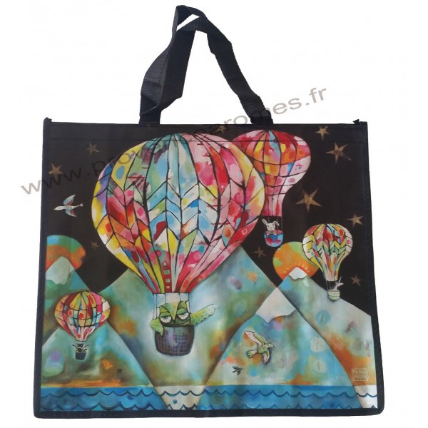 Sac Cabas ANIMAUX EN MONTGOLFIÈRES ALLEN DESIGNS. Très beau sac en polypropylène avec une très jolie déco à mi-chemin entre le réel et les contes de fée, des couleurs fraîches pour une déco Designs. Un sac cabas de course ou de plage